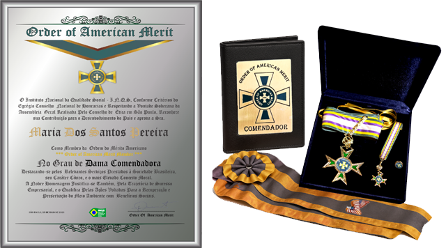 MEMBRO COMENDADOR - A Nobre Homenagem justifica-se pelos relevantes serviços prestados à Sociedade Brasileira, Caráter Cívico e o mais elevado Conceito Moral dos Membros..