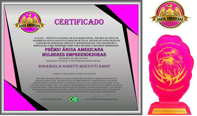 Prêmio de Qualidade Águia Americana é uma homenagem aos Principais Destaques do Mundo Empresarial.